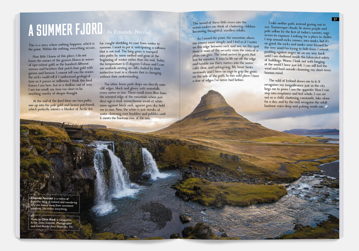 From the quiet power of nature in A Summer Fjord, to the intense emotional โwildnessโ of a provoked woman in Maiden Over, weโve got a rich spectrum of stories and poetry to dive into. Nature, our animal friends and the perilous fate of our planet also come into play as we delve into Issue 14.