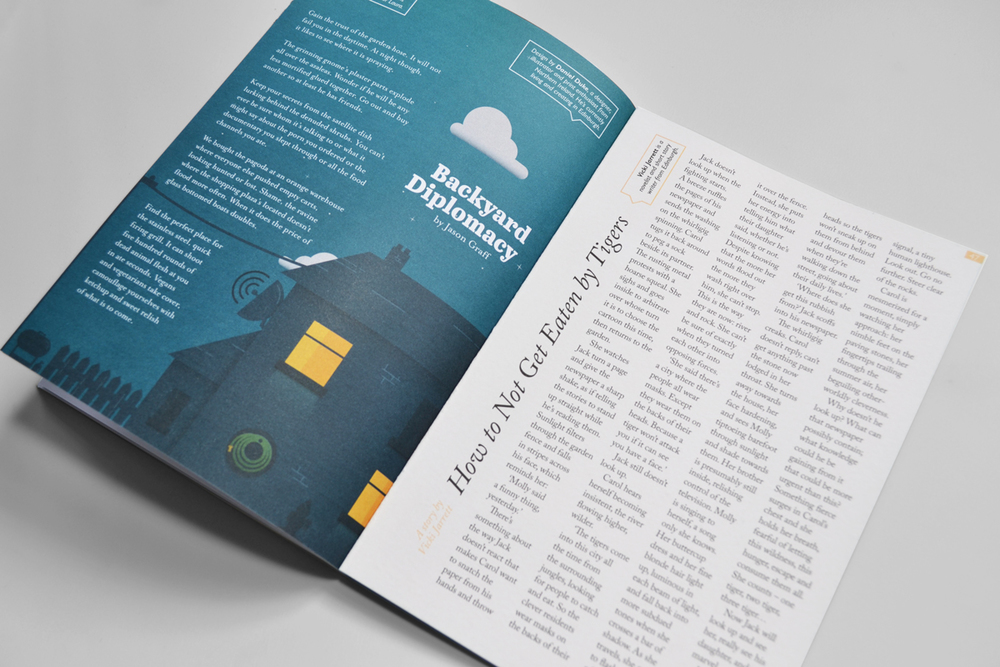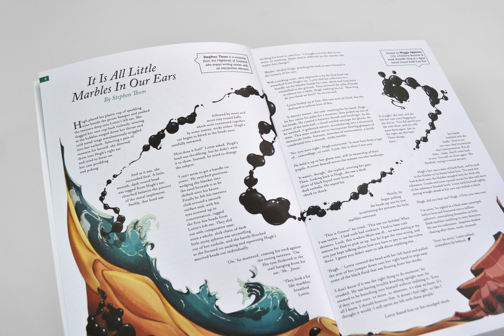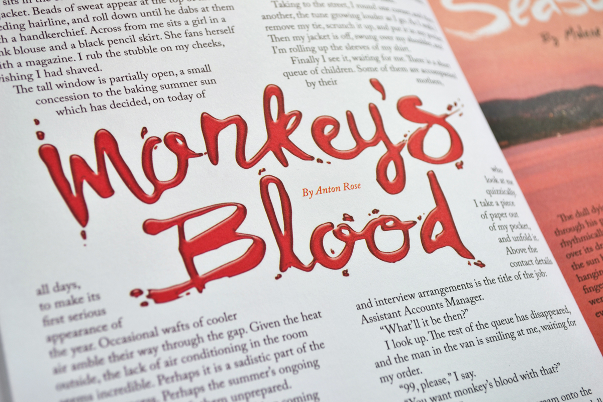 …and, if we do say so ourselves, it’s a real literary and visual treat. The call for submissions for Issue 2 was hugely successful, in both quantity and quality. In fact, we have increased the page count from 32 to 48 to accommodate as much exceptional writing as possible. As well as having much more content, we have moved away from the newsprint of Issue 1 and embraced a perfect-bound, paperback format. This is to ensure the amazing writing and stunning artwork inside are shown to their full potential.